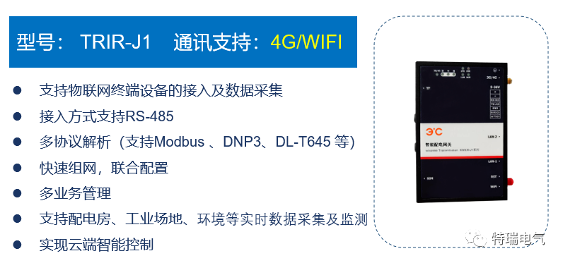 此次项目实施,特瑞电气推出TRIRM-C系列配电箱子,里面安装包括特瑞电气核心产品:智能配电网关TRIR-J1,智能电表、供电电源等其他布线。