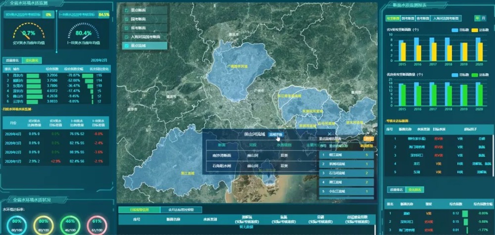 通过各流域重点监测区域的水质监测传感器对水质的PH酸碱度、耗氧物质污染DO等监测指标数据通过工业智能网关进行采集上报。在环保监测平台上以多维度、多图表进行展示,直观显示各河流流域水质监测动态。同时,对超过阈值的河流流域的监测点进行告警。